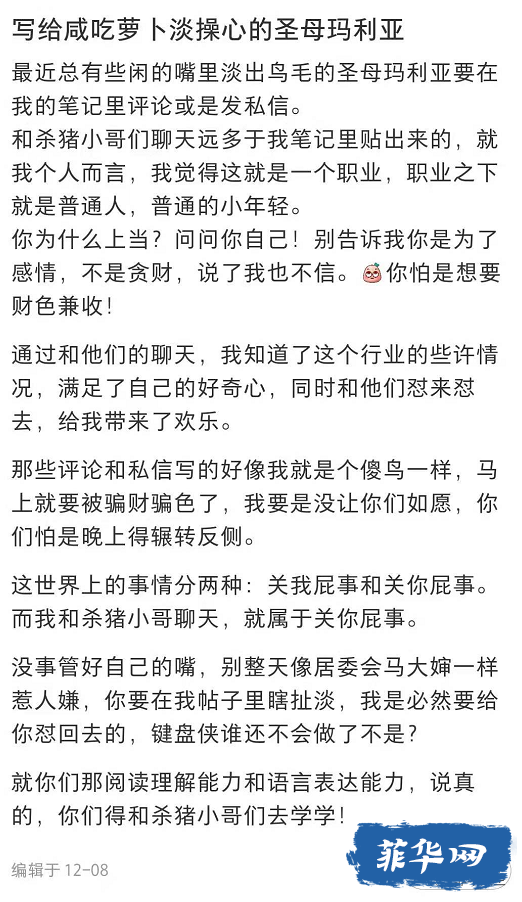 因为没有被骗到钱,她们并不能体会到那些每个月还款压力巨大的受害人是如何生活的,她们还会站在道德的角度抨击受害人是贪财好色,并且嘲讽那些质疑她们的人。