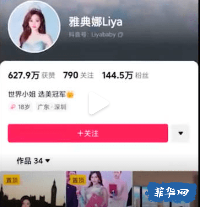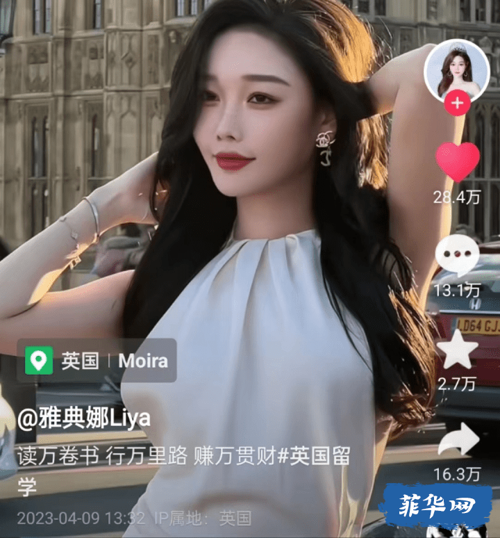 「雅典娜Liya」最近的抖音颢示身在英国。网图