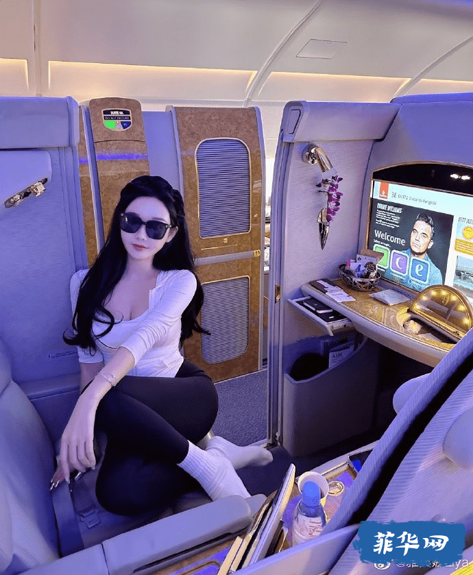 「雅典娜Liya」奢华的日常生活引人瞩目,例如,她会购买几万一张的头等舱享受行程。网图