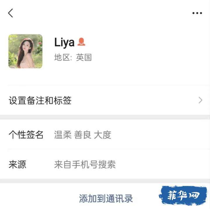 8月19日,一名自称曾与「雅典娜Liya」有过联系的网民表示一个疑似「Liya」的微信账号,显示地区为英国,该手机号归属地为广东深圳,不过多次申请添加该微信均未被通过,连续多次拨打该手机号码,也均显示已停机,无法接通。