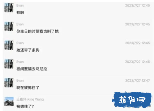疑似「雅典娜liya」微信聊天截图显示,她与闺蜜约定一起前往菲律宾。网图