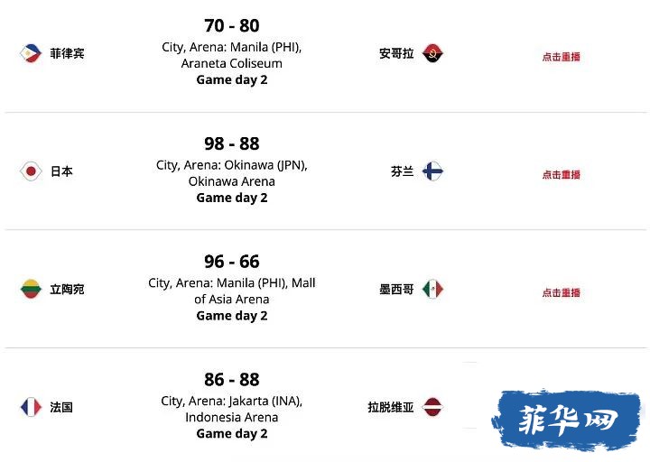 2023年国际篮联篮球世界杯正式于8月25日在菲律宾、日本以及印度尼西亚展开,菲华网将对每日赛事结果以及隔日赛事安排进行报道。